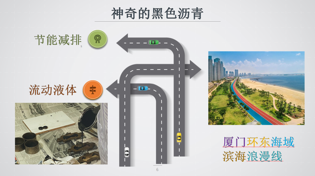 把自己關(guān)在黑色信息繭房中的我,在2022年參加了新員工輪崗計(jì)劃,前往新立基瀝青研發(fā)中心進(jìn)行基層實(shí)踐??粗谄崞岬母酄罨瘜W(xué)物質(zhì),我眼前一黑,感到陌生且害怕。它的氣味有些刺鼻,它有什么用?它是否有毒?懷著忐忑的心,我硬著頭皮在研發(fā)專員的帶領(lǐng)下開展了實(shí)驗(yàn),從瀝青的延伸度、軟化點(diǎn)、針入度和彈性老化等方面入手,漸漸地我發(fā)現(xiàn)這抹黑,有點(diǎn)神奇。它可以是綠色,節(jié)能減排還提供更好的排水性能,循環(huán)再利用;它也可以是紅色,在灼灼高溫之下延展形態(tài),變成液體靈活流動(dòng);它還可以是彩色,添加不同顏料后搖身一變,成為“廈門環(huán)東海域?yàn)I海浪漫線”的彩色步棧道!