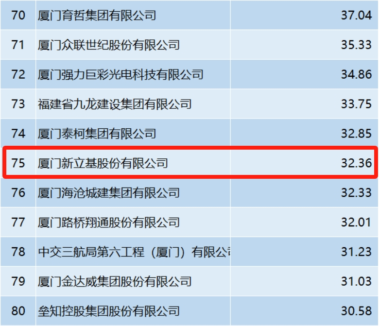 喜報(bào)|廈門新立基上榜“2024廈門企業(yè)100強(qiáng)”第75位
