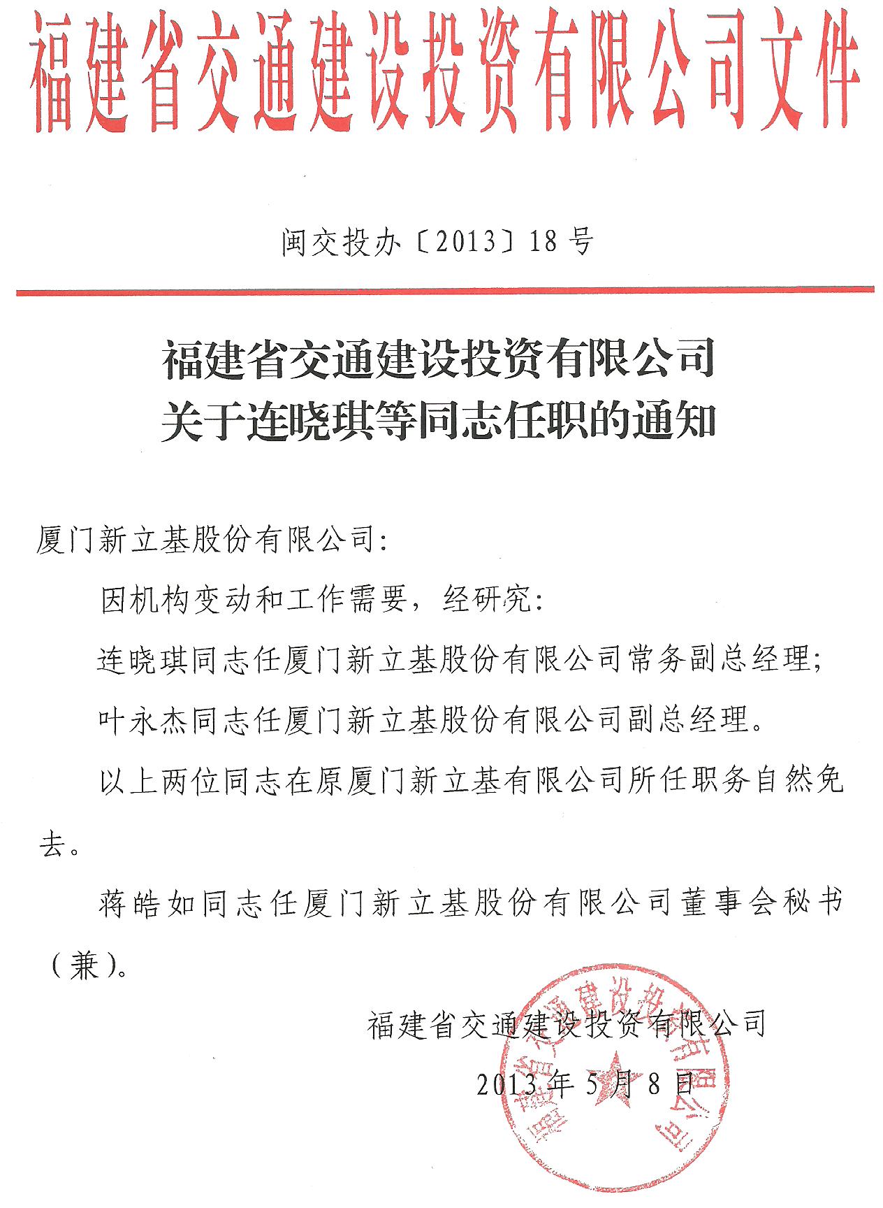 福建省交通建設投資有限公司關于連曉琪等同志任職的通知