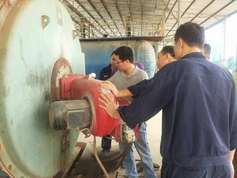 第二、加強(qiáng)生產(chǎn)業(yè)務(wù)知識(shí)學(xué)習(xí):為加強(qiáng)生產(chǎn)人員對(duì)于鍋爐等設(shè)備機(jī)器新工藝的技術(shù)學(xué)習(xí),6月5號(hào)特聘請(qǐng)?jiān)V蒎仩t廠技術(shù)人員到我司庫(kù)區(qū)針對(duì)鍋爐使用過程中的工況表現(xiàn)情況進(jìn)行分析,并指導(dǎo)我司員工對(duì)鍋爐的保養(yǎng)、檢查、維修等具體實(shí)施方法進(jìn)行學(xué)習(xí)和認(rèn)識(shí)。通過此次現(xiàn)場(chǎng)故障的演練及鍋爐拆裝的解說交流,不但提高了生產(chǎn)人員對(duì)于鍋爐的相關(guān)理論知識(shí)的認(rèn)識(shí)、也鞏固了今后故障檢維排查方法,并有效提高崗位技術(shù)水平。