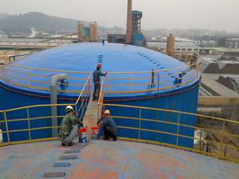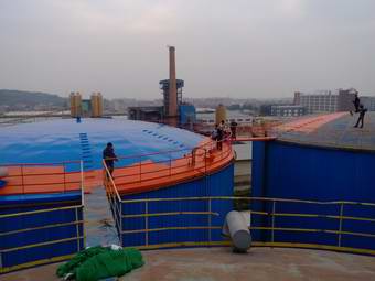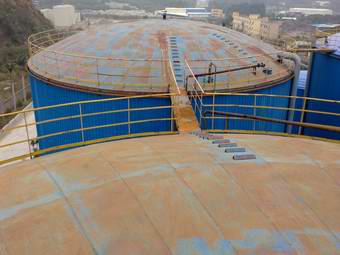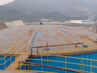 6000T大罐周長60多米,(大罐頂部隆起,每座6000T罐實(shí)際面積不小于390平方)