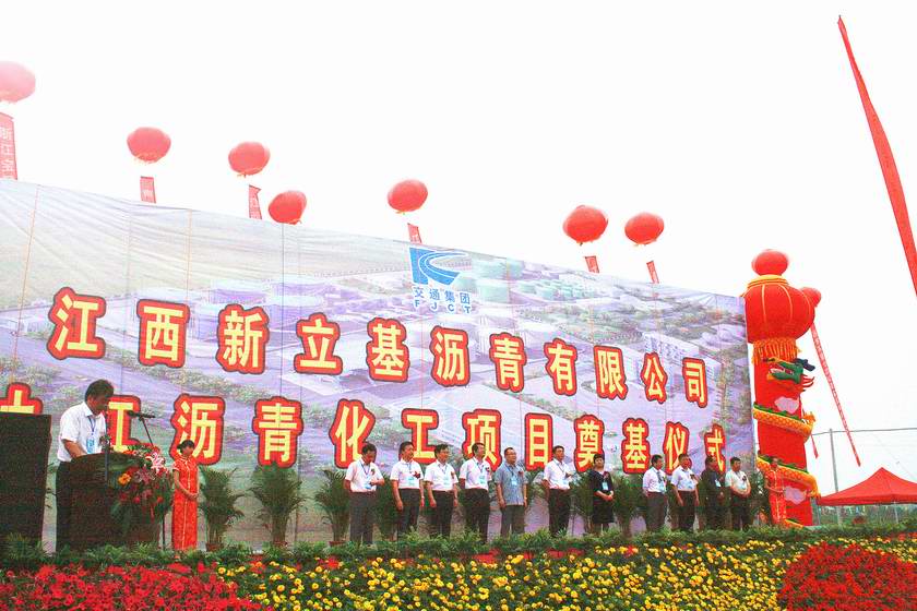 江西新立基瀝青公司九江瀝青化工項(xiàng)目的奠基,標(biāo)志著福建交通集團(tuán)、福建交通建設(shè)投資公司、廈門新立基公司致