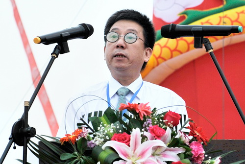(圖為左延區(qū)長(zhǎng)在奠基儀式上致辭)