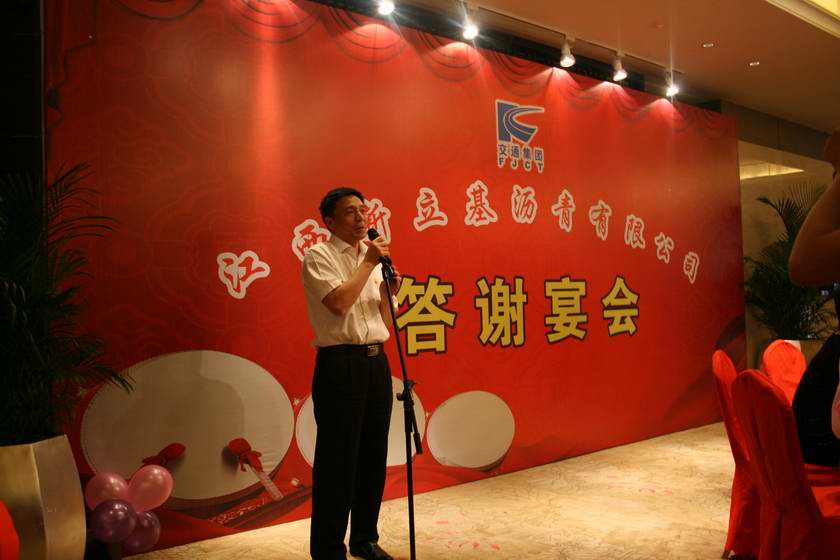 中午十二點(diǎn),江西新立基瀝青公司答謝宴會(huì)在信華建國(guó)大酒店隆重舉行。劉小健董事長(zhǎng)發(fā)表了熱情洋溢的祝酒辭!劉董事長(zhǎng)表示福建交通集團(tuán)將一如既往地支持交投公司在江西等地的以瀝青、化工為主業(yè)的項(xiàng)目!他要求江西新立基公司瀝青化工項(xiàng)目堅(jiān)持又好又快的原則,科學(xué)安排、精心組織、扎實(shí)推進(jìn),爭(zhēng)取早出成果、早見(jiàn)成效!劉董事長(zhǎng)祝各位來(lái)賓、各位同仁及江西新立基全體干部員工身體健康!工作順利!闔家幸福!